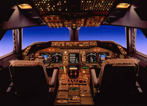 The large, bright integrated displays of the 747-400 digital flight deck reduce crew work load and enhance situation awareness.