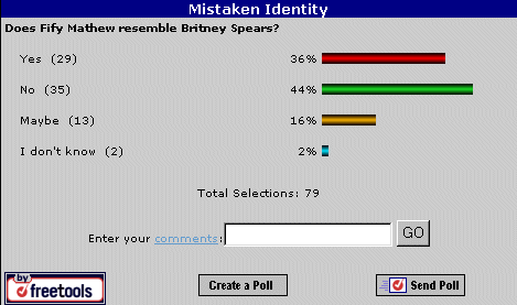 Okay, so I lost the bet against Fify about her looking like Britney Spears.